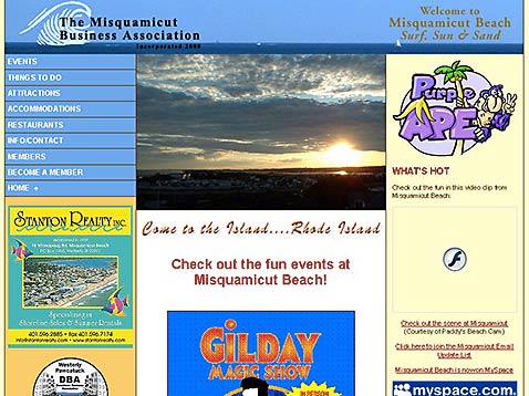 Misquamicut Beach, is a local business association based in Rhode Island. They needed a web site to support their members and promote the area and it’s businesses. Glyph created a small, self-supporting web site for MBA. It includes a Blog for the Events page that allows the MBA staff to do very quick updates online without any knowledge of HTML.