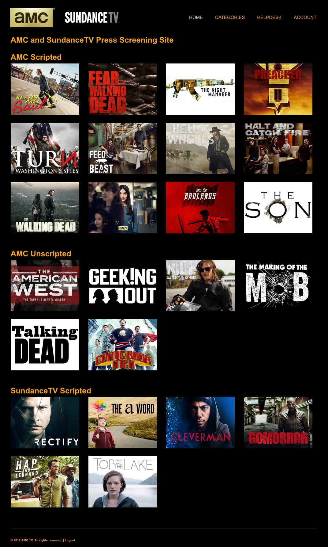 AMC acquired SundanceTV and they needed a video screener site to do outreach to reviewers, influencers, industry people, etc. Glyph built an add-on the AMC video preview site; which helped SundanceTV expand their reach. Eventually, the site grew to include SundanceNOW. The site protected the intellectual property while creating greater awareness of their content.