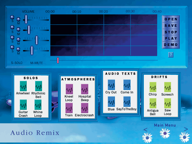 The BLUE CD-ROM fuses BLUE’s various incarnations (sounds, images, text) with the interactive possibilities of the medium, producing an entirely new and exciting BLUE experience.