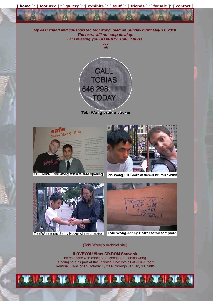 cbcooke.com is home to a variety of information about the artist CB Cooke, owner of Glyph Media, including samples of work, exhibit history, and web works. Currently featured work include “daddie” that was in the Sundance Online Film Festival and a series of photos of the World Trade Center disaster.