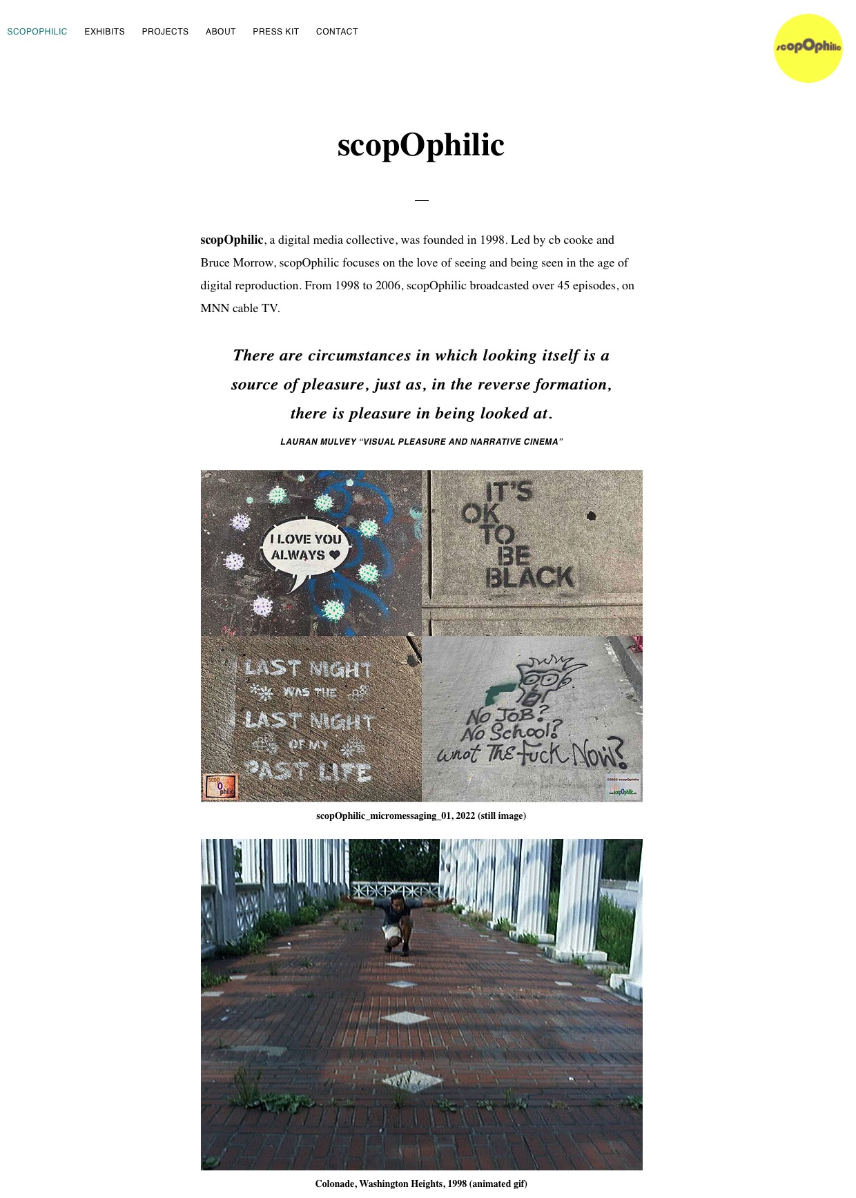 scopOphilic is a Manhattan Public Access Television show with a twist…it’s art. Digital image-based art. scopOphilic is a digital imagery collective that views the world in a different way.